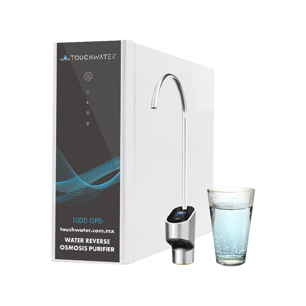 Sistema de purificación de agua por ósmosis inversa de alto flujo, diseñado para suministrar agua purificada de calidad mediante tecnología de doble etapa de filtración: carbón activado y membrana OI. Opera digitalmente con medidor de TDS en línea, monitoreo de vida útil de filtros y funciones automatizadas de enjuague y reinicio. Capaz de producir hasta 1000 galones de agua purificada por día, está fabricado para aplicaciones que requieren alta pureza y flujo constante.